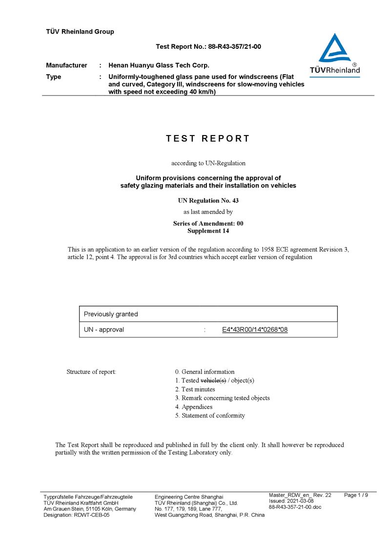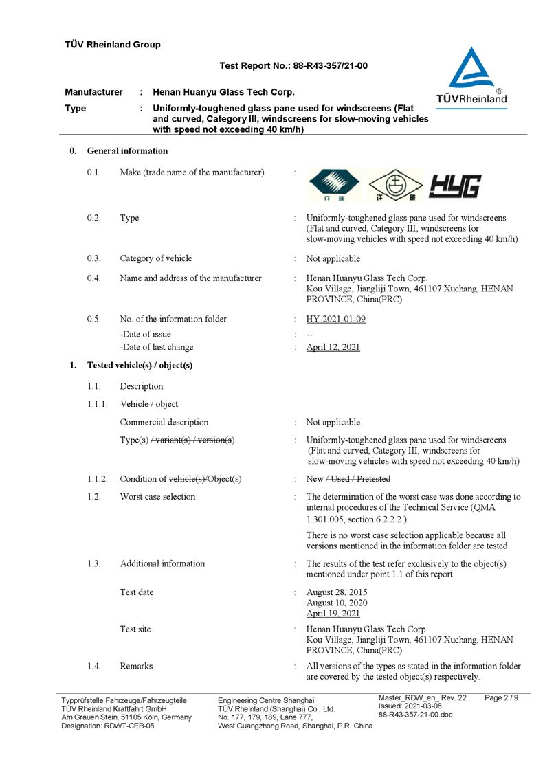 河南環(huán)宇玻璃科技股份有限公司年產(chǎn)35萬平方米驗(yàn)收報(bào)告公示